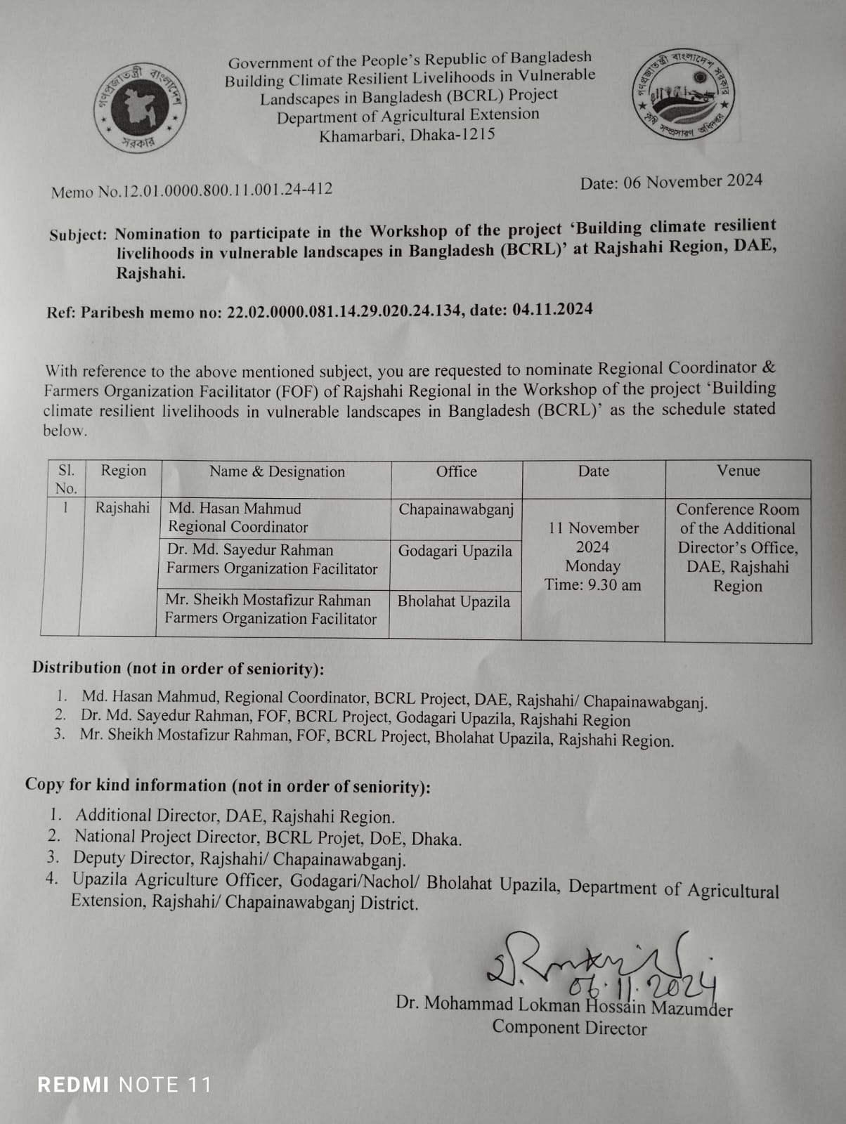 | ৮ | Nomination of SAAO to participate in the ToT on BCRL-FFS at DD Office, Chapainawabgonj | | | ১৬-১০-২০২৪ | দেখুন |